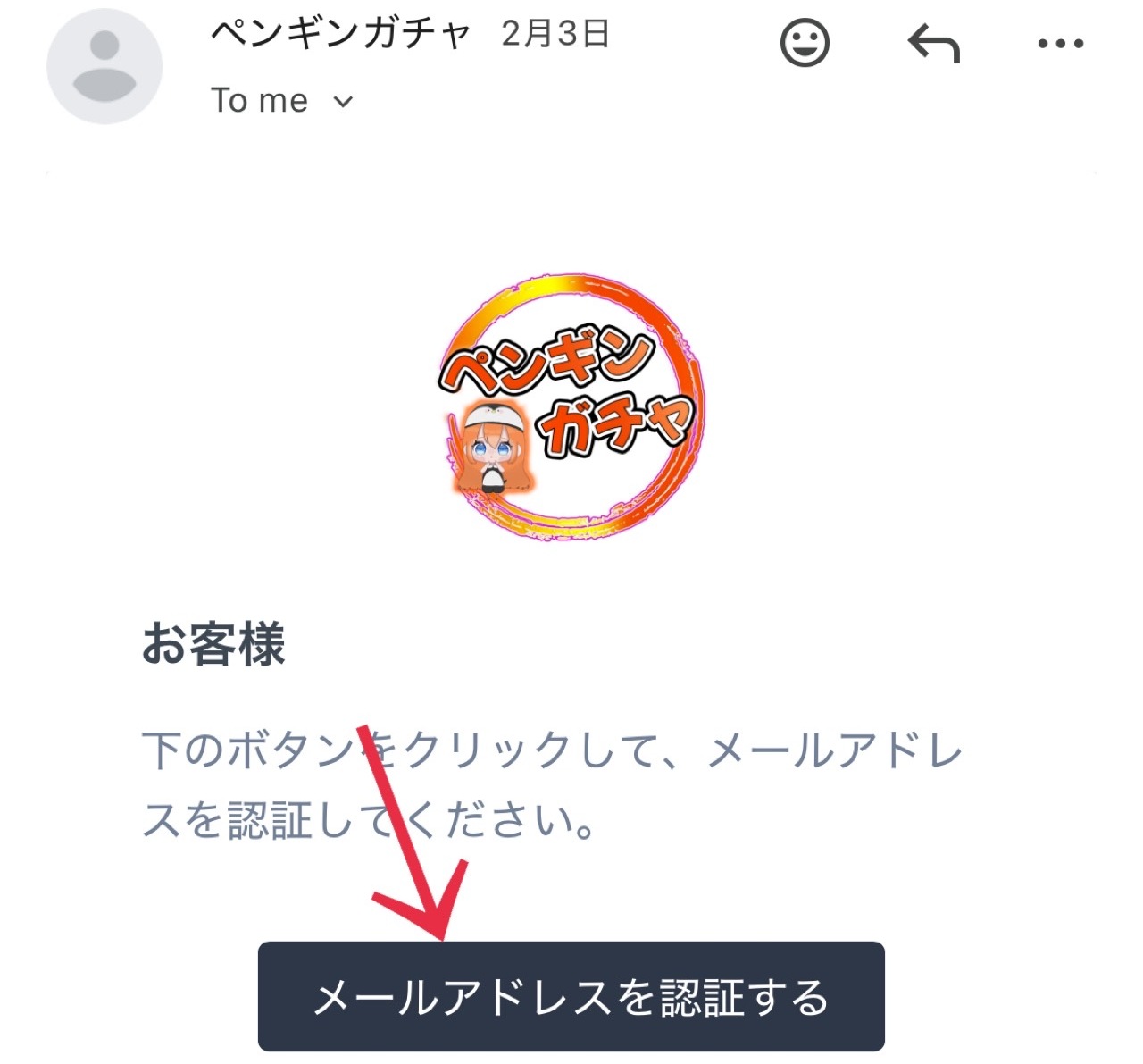 登録したメールアドレスに届いた「メールアドレスを認証する」をクリックして、メールアドレスの認証を済ませてください。