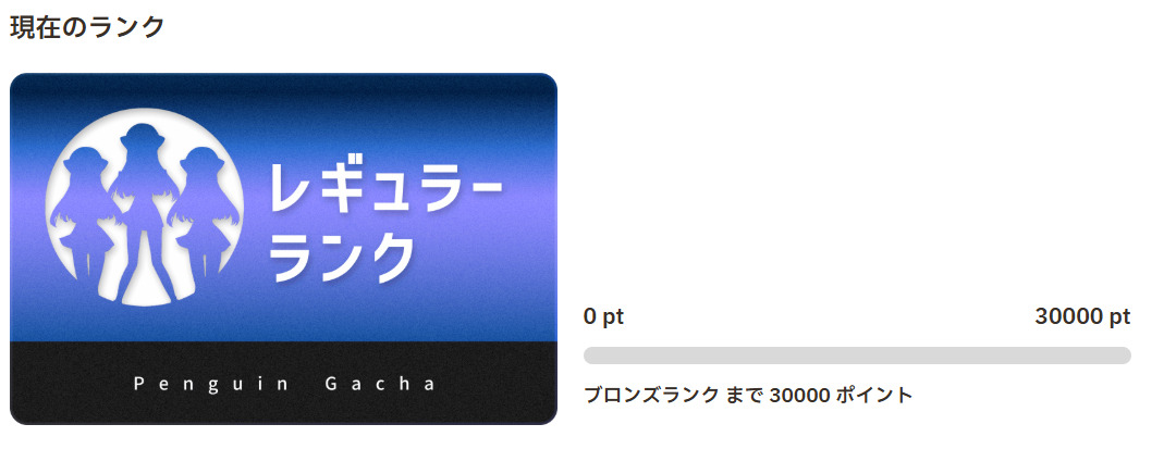 ペンギンガチャは会員ランク制度を導入しており、ボーナスポイントやポイント購入時の還元率アップ、限定オリパの解放が特典として付与されます。