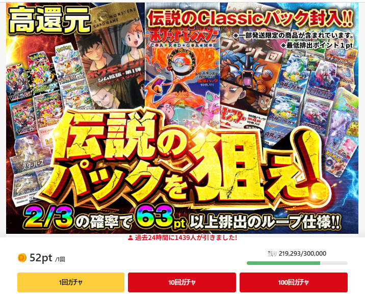 最低保証は1ptで使った分以上のポイントが必ず返還されるため、初心者から上級者までおすすめのガチャです。