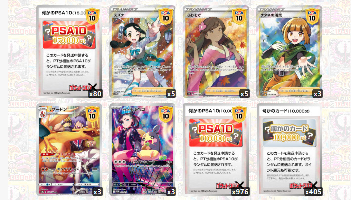 何かのカードや何かのPSA鑑定品はラインナップにないカードが送られる可能性が高い