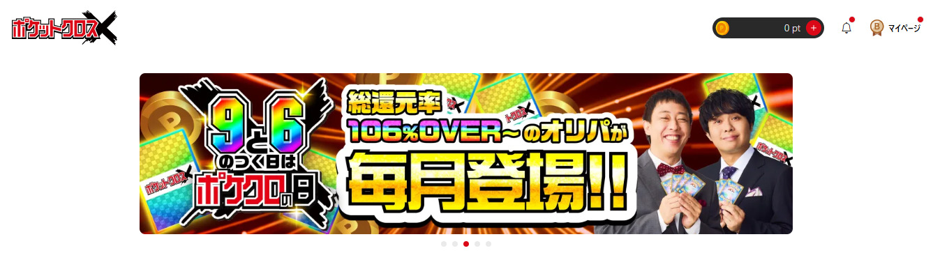 ポケットクロスでは、毎日1回1ptで引けるログインボーナスオリパや1/1.9の高い期待値で当たるオリパがお得なガチャとしておすすめです。