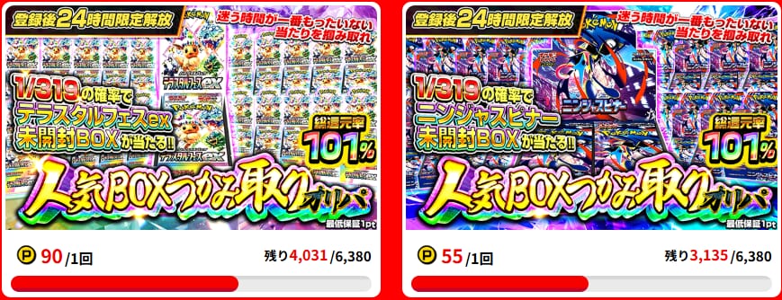 ポケパ365で当たりを狙いたいときは、新規登録者限定のアド確定オリパにチャレンジしてみましょう。