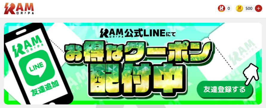 - RAMオリパ公式LINEやRAMオリパ公式Xで定期的にクーポンを配布!