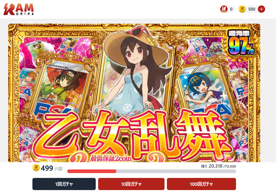 RAMオリパは最低保証で損しないオリパや、公式SNSを絡めたキャンペーンでお得に遊べるオンラインオリパです。
