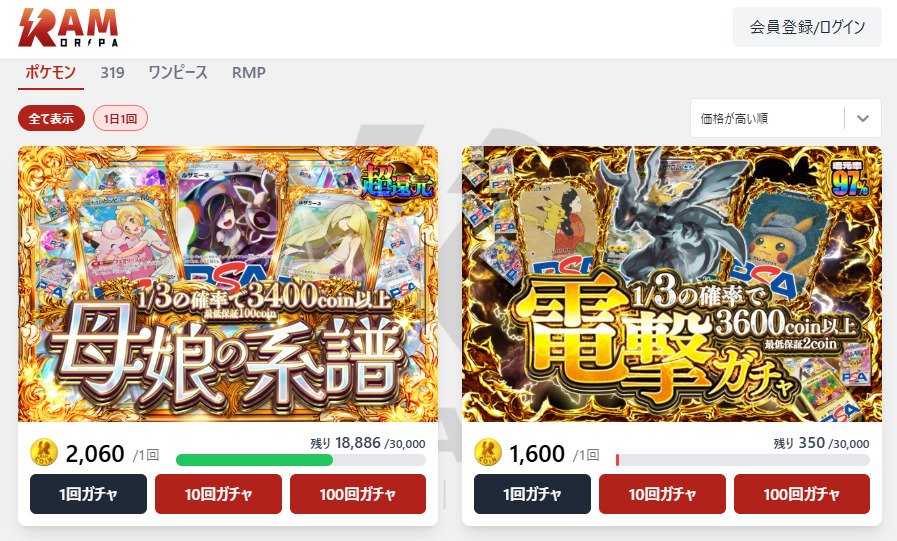 RAMオリパは、ポケカとワンピースカードを取り扱うオンラインオリパです。