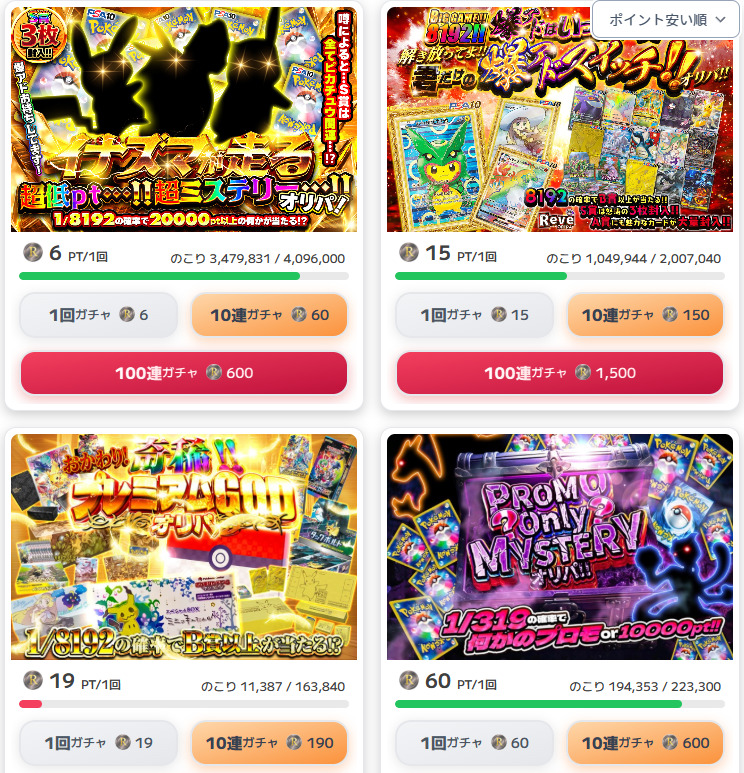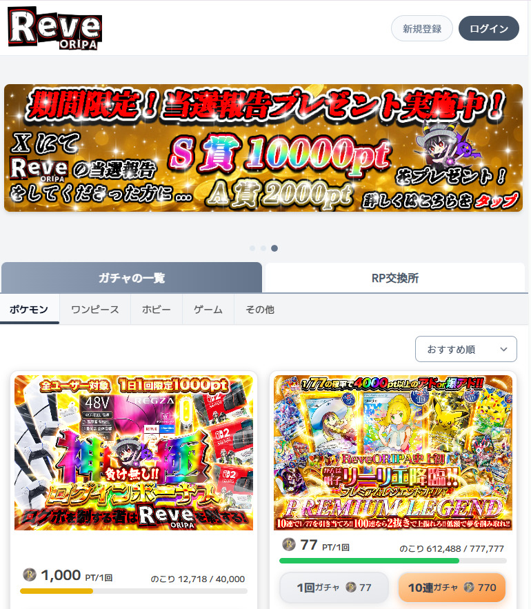 Reveオリパは、6ptからオリパを引けます。