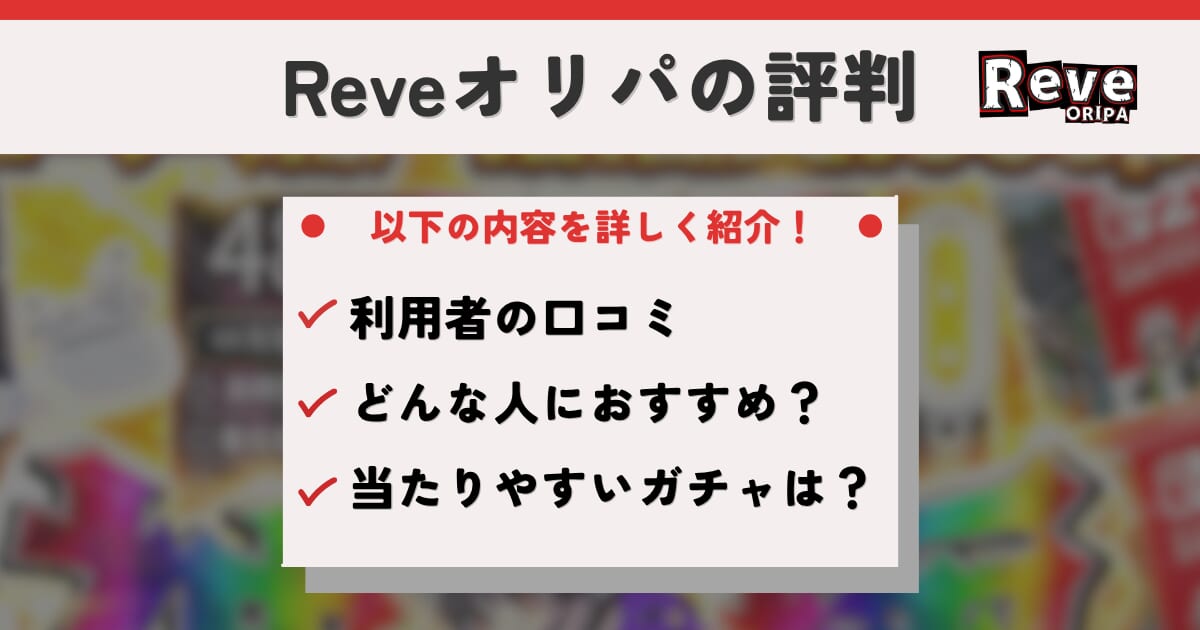 | 魅力 | ランク制度あり 還元率100%の オリパが引ける | SNS投稿数No.1 利用者数業界No.1 DL者数No.1 | クーポンや ログボなど 特典も多数 |