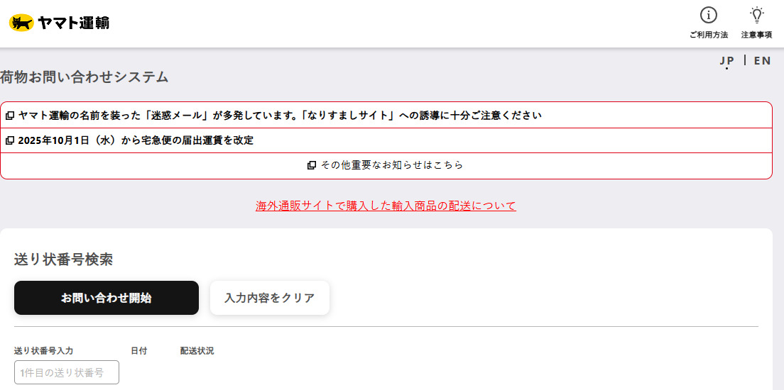 配送業者はヤマト運輸や日本郵政を利用しており、どちらも専用サイトで追跡番号を入力して、配送状況を把握できます。