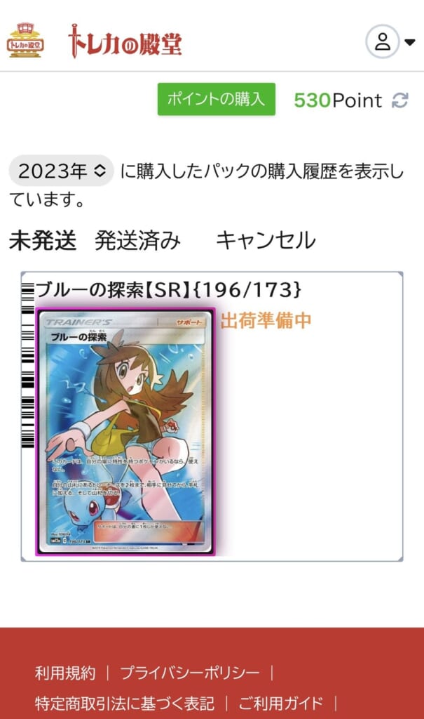 トレカの殿堂では「未確定の購入商品」と「出荷状況」の項目で、商品のステータスが確認できます。