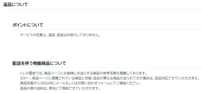 一方、到着した商品に不備がある場合は、トレカの殿堂側の送料負担で返品することは可能です。
