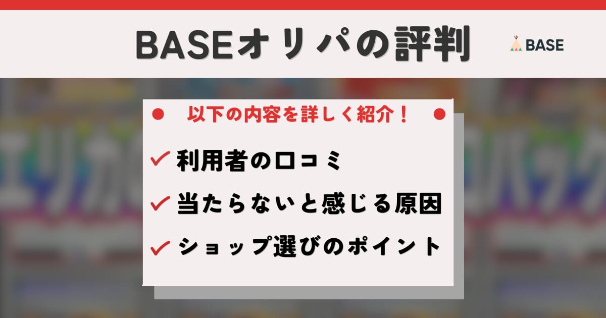 BASEでも購入可能ですが、小規模店や個人が運営していることも多いので、運営情報や利用者の声をよく確認し、信頼性に問題が無いかチェックすると安心でしょう。